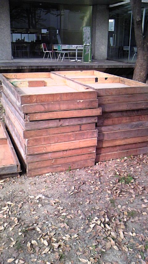 今日は地ならしと梁や壁を作りました。組み立てはまだですが。