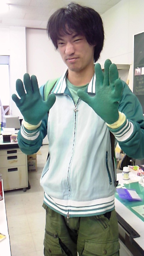 手も緑。