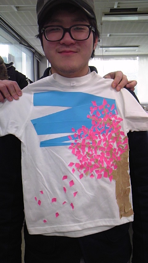 今日友人からTシャツを作るのを手伝ってくれと言われ百長総出で手伝う事に。僕は喋ってただけ。ちなみにTシャツのテーマは「春」との事。