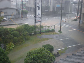 画像はゲリラ豪雨の時の百長の庭。