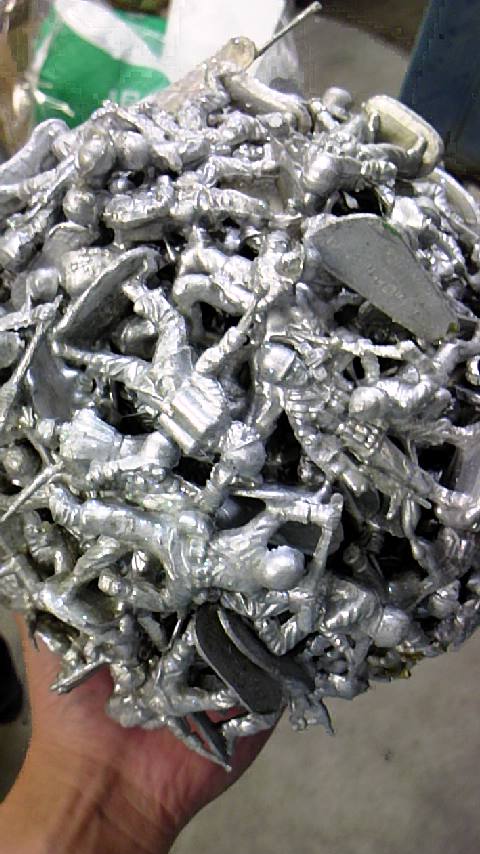 隣の部室にあったもの。トイストーリーに出てくる兵隊達が銀色に塗られて丸められたもの。